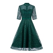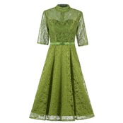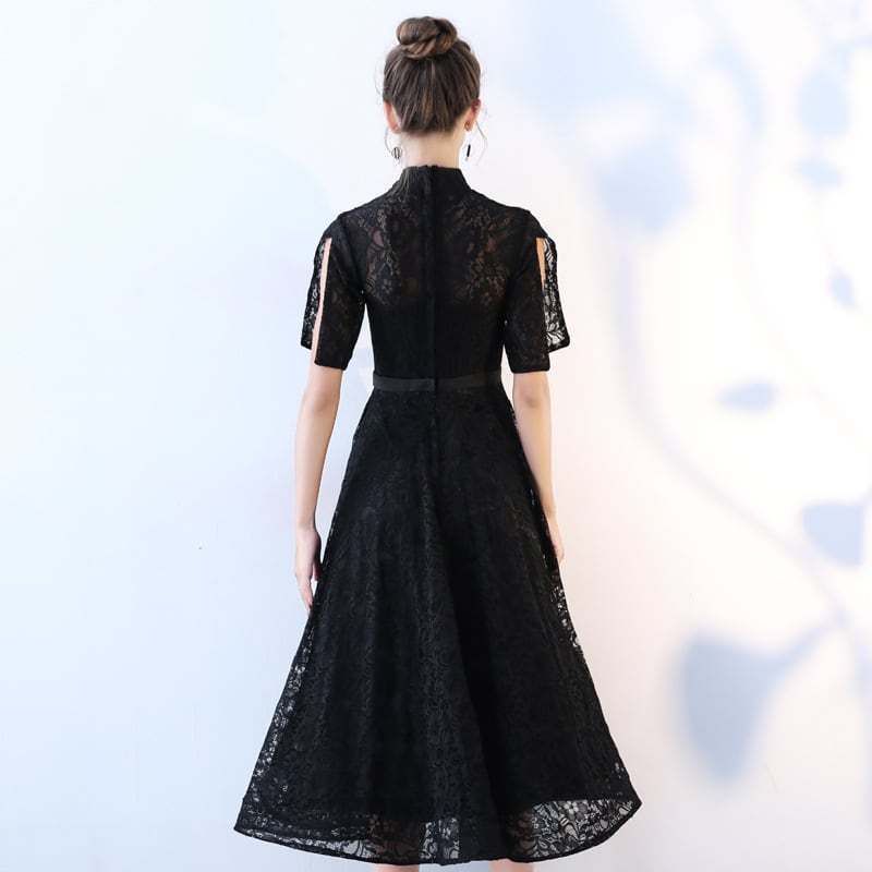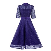 肩スリット上品ロングフレアレースワンピースドレスリボンパーティーイベント結婚式卒業式女子会キャバクラブ韓国ワンホン