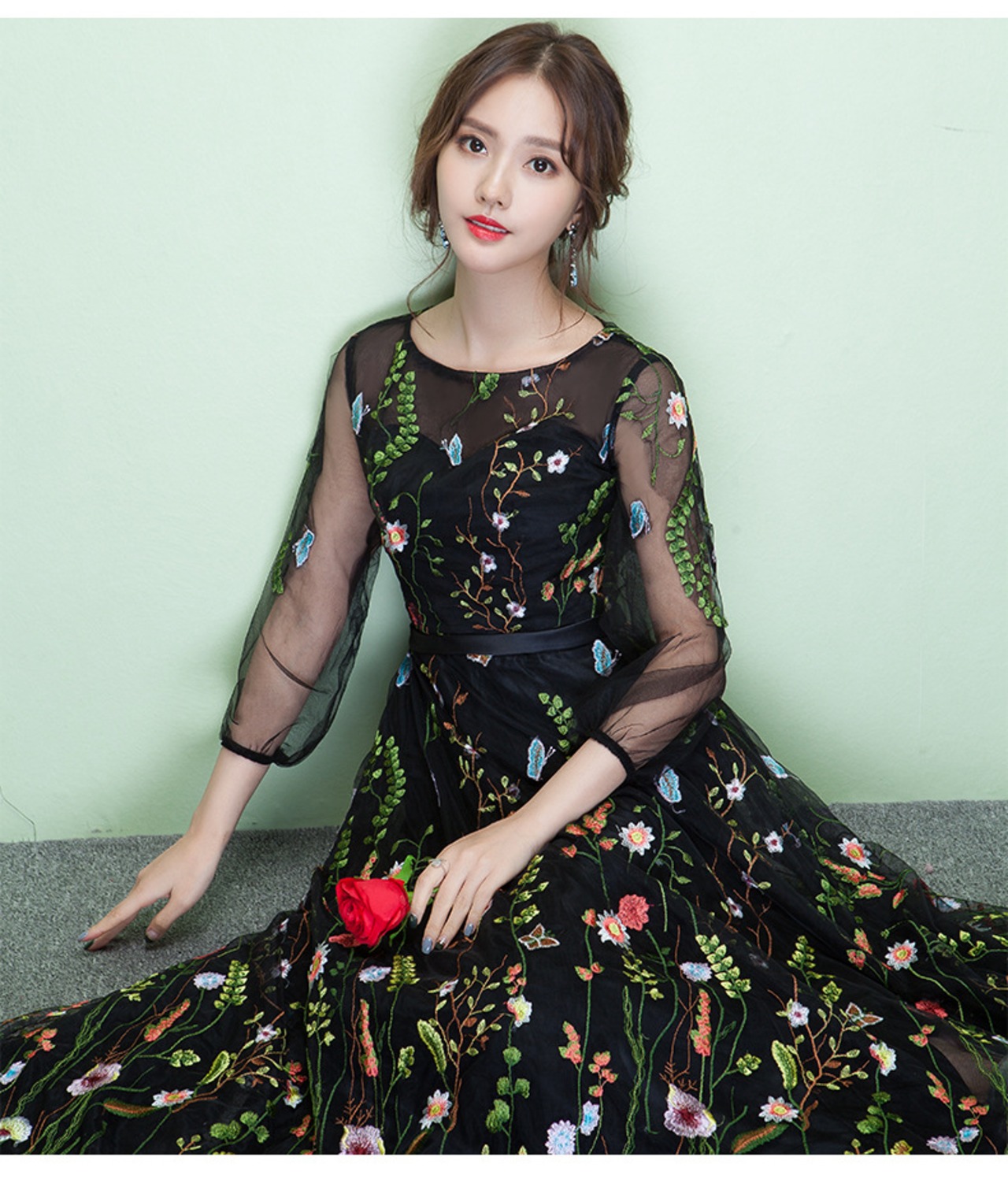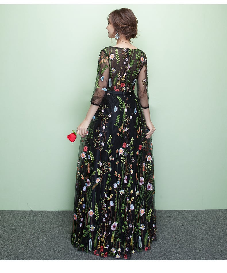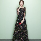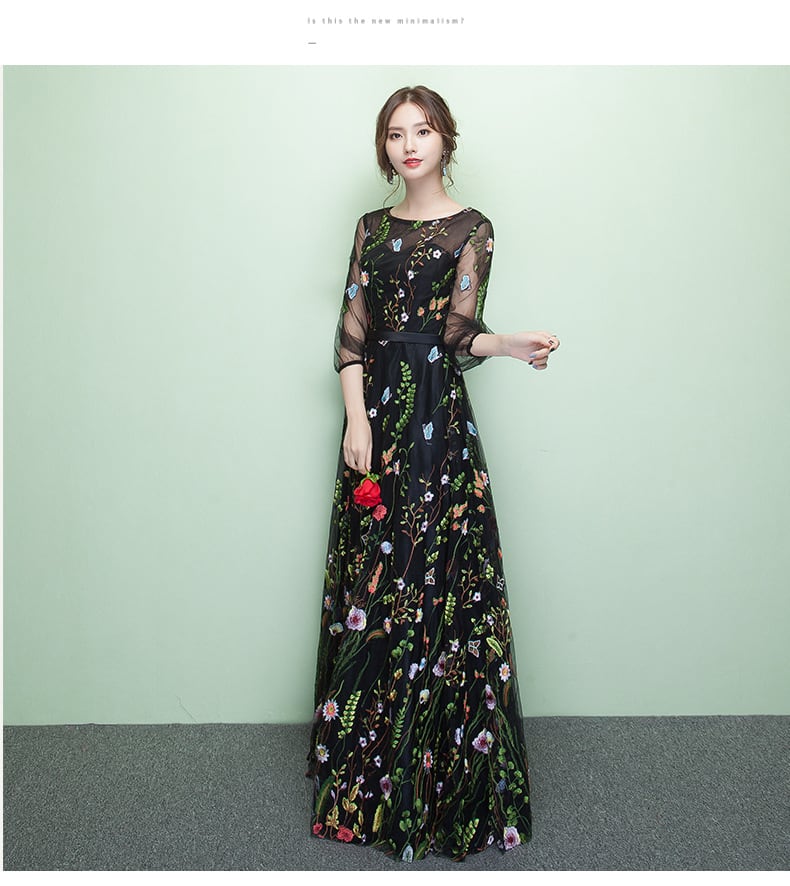 刺繍ロングワンピース袖レースイベントパーティー結婚式女子会演奏会卒業式ャバクラブ上品スカート