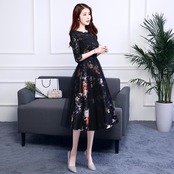 【即納】パーティーワンピース韓国レースフレアドレス黒クリスマスイベント結婚式女子会ワンホンキャバクラブ卒業式